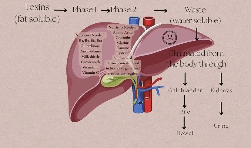 Get to know how the liver actually works! Your liver detoxifies in phases, and it needs certain nutrients in order to detox. When we have a diet low in nutrients, it can slow down the detoxification process and lead to other issues.