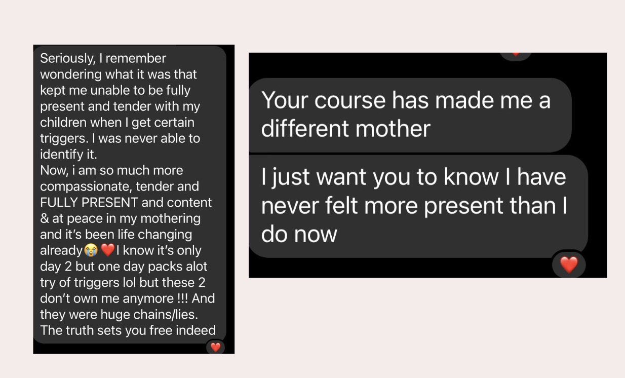 Past wounds + emotional triggers can hardened our hearts because they keep us in self protection mode. Self protection can prevent us from being fully present with our loved ones.Tuning into your triggers takes courage + strength, but it is a life changing practice that can soften your heart in ways you would never expect. I have an entire course on this and it is why women report wins like this: